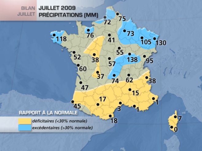 Bilan des précipitations juillet 2009 © cyd