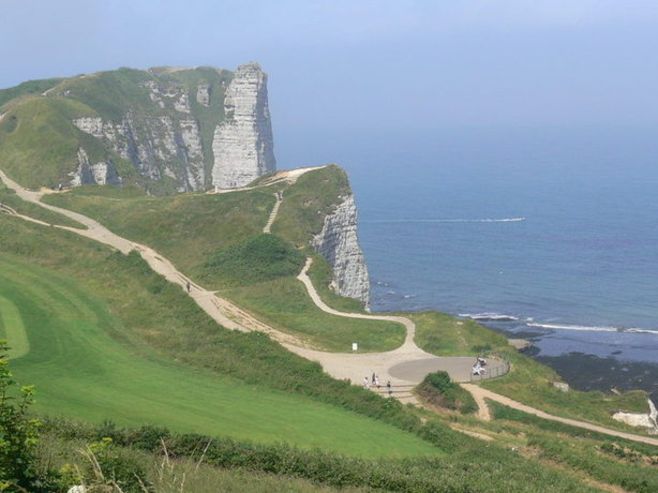 Située sur la côte normande et recouvrant la quasi-totalité du littoral de la Seine-Maritime, la Côte d’Albâtre s’étend sur 154 km, dont 18 km de plages. Son nom fait référence à la couleur blanche de ses falaises recouvertes de craie. Ce sont justement ces composants crayeux qui donnent cette couleur unique à l’eau, grise tirant sur une teinte laiteuse.