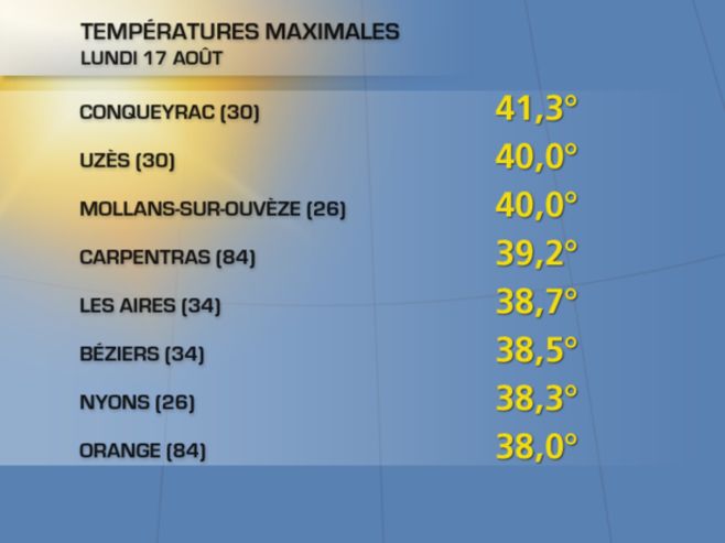 * 40° à Uzès (30) et Mollans-sur-Ouvèze (26).