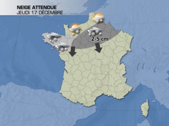 En toute fin de nuit et dans la matinée de demain, de petites chutes de neige se produiront jusque dans Paris et pourraient tenir localement au sol. Si la couche ne sera pas très conséquente ( de l'ordre de 1 à 3 cm, surtout en banlieue ), la grève des transports pourrait ajouter aux complications.