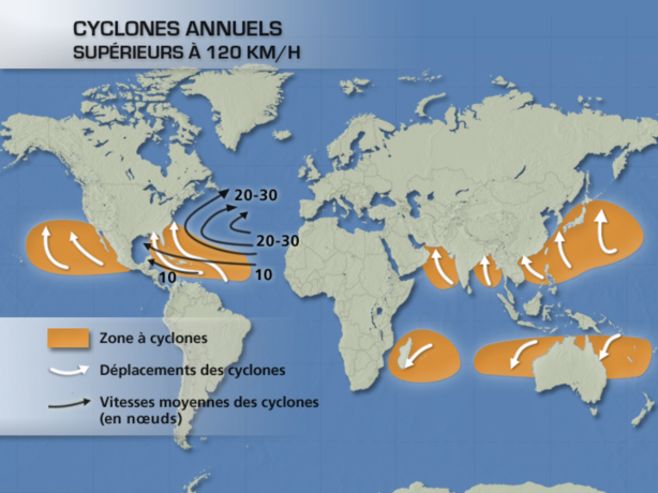 Peut-être avez-vous remarqué que les cyclones ont toujours lieu au mêmes endroits et pendant les mêmes saisons. Alors, que