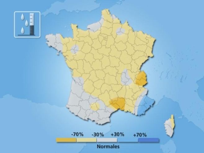 On observe un ensoleillement déficitaire de l’ordre de 18% à l’échelle de la France. C’est au nord de la Loire que le déficit d’ensoleillement est le plus important. Il atteint jusqu’à 50% en région parisienne qui aura connu un hiver particulièrement gris cette année. Seuls le golfe du Lion et la Corse ont un ensoleillement conforme à la saison avec même un excédent qui s’élève à 15% sur la région bastiaise. La côte d’azur est moins bien servie avec un déficit d’ensoleillement de l’ordre de 15 à 20%.