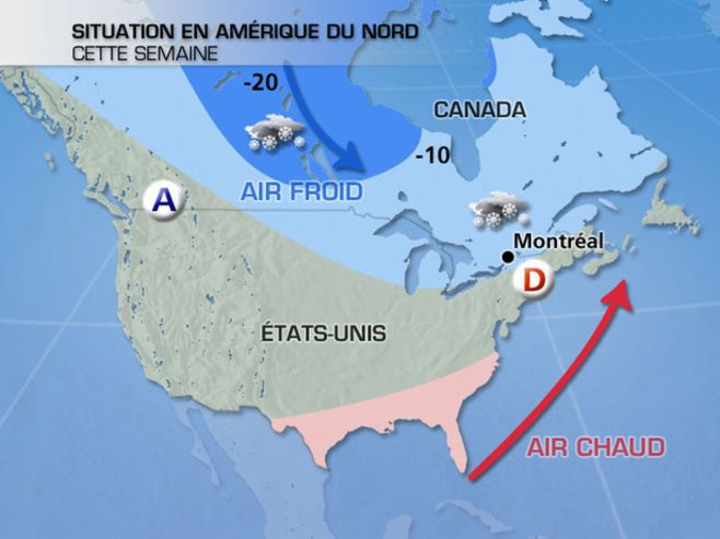 C'est donc l'air froid issu du pôle qui a pris l'avantage jusqu'en milieu de semaine prochaine. On attend des températures qui s'abaissent autour de -10 à -15°C en fin de nuit dans les environs de Montréal en raison des sols enneigés et du fort rayonnement nocturne . Le dégel sera par ailleurs difficile jusqu'à mercredi ou jeudi prochain.