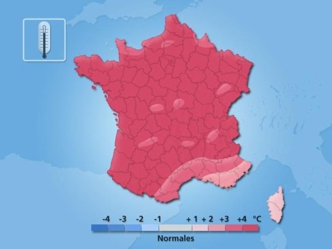Ce mois d’avril 2011 a connu un excédent thermique de l’ordre de 4,2°C à l’échelle de la France. Il vient en deuxième position des mois d’avril les plus chauds depuis 1900, juste après le mois d’avril 2007 qui avait connu un excédent de 4,3°C. Dès le début du mois la chaleur s’installe sur la plus grande partie du pays. Le 2 avril de nombreux records journaliers de températures sont battus : 24,8°C à Paris (ancien record 24,6°), 26,5°C à Bourges (ancien record 25°C), 26,7°C à Tarbes (ancien record 26,7°C), 26,8°C à Auxerre (ancien record 25,7°C), 27,6°C à Brive-la-Gaillarde (ancien record 27,3°C), 28°C à Vichy (ancien record 26,1°C). Le 6 avril, de nouveaux records de chaleurs sont enregistrés, notamment dans le sud-ouest où la barre des 30° est franchie : 30,2°C à Biarritz, 30,9°C à Rion-des-Landes (40) et même 31°C à Sabres (40). Le 8 avril c’est en Languedoc-Roussillon que l’on observe une chaleur record à une telle période de l’année : 32,3°C à Perpignan, 33°C dans le centre-ville de Montpellier et jusqu’à 33 ,9°C à Lodève (34) ! Le 10 avril si, les températures chutent dans le sud-ouest, la chaleur persiste au nord ; un record de chaleur est battu à Paris avec 26,8°C. A noter que la chaleur n’épargne pas les montagnes puisque l’on enregistre 28,6° le 9 avril à Bourg-Saint-Maurice à 900 mètres d’altitude, ce qui constitue un record de chaleur mensuel. A la mi avril on retrouve pendant quelques jours des températures plus conformes à la saison. De fréquentes gelées blanches sont observées le 13 avril dans le nord et l’est : -1,2°C à Alençon (61), -1,9°C à Chateaudun (28), -2,7°C à Charleville-Mézières (08), -3°C à Nevers (58), -3,8°C à Chaumont (52), -4,8°C à Mourmelon-le-Grand (51). La chaleur revient en force à partir du 19 avril. Avec le flux orienté au sud-est, des températures inhabituelles sont enregistrées sur les côtes de la Manche et de la mer du Nord : 25°C à Dieppe (76), 25,6°C à Dunkerque (59), température qui n'a été dépassée que 4 fois durant tout l'été 2010 ! Au Touquet, la température de 25,5°C observée constitue un record mensuel, battant de 0,2°C le précédent du 30 Avril 1952 ! Le week-end pascal est estival sur les régions du nord avec de nouveaux records de chaleur battus le 23 avril : 25°C à Abbeville (80), 26°C à Rouen (76) et Metz (57) et 27°C à Lille (59) et Paris (75). En fin de mois, les températures baissent significativement. La journée du 29 avril est même assez fraîche au nord avec seulement 10°C à Rouen et 12°C à Paris. Au total, une grande partie du pays a connu un excédent de température qui avoisine les 4°C, localement 5°C dans l’ouest et le nord-ouest. Les régions proches de la Méditerranée font exception avec un excédent de 1 à 3°C : sur ces régions, les brises de mer fréquentes ont limité la hausse des températures.