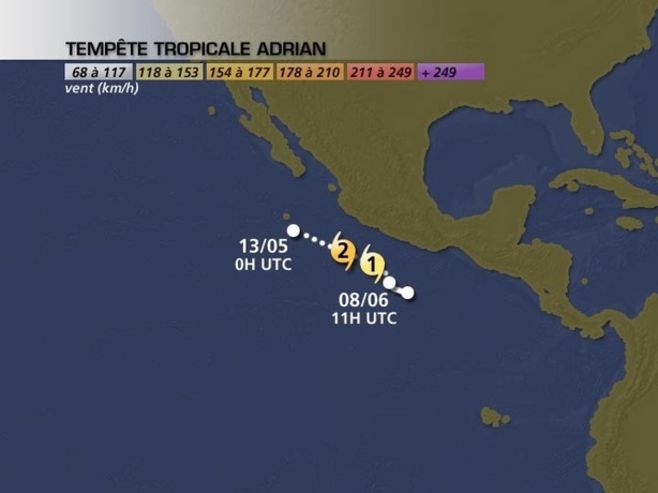 Premier cyclone tropical de la saison dans le Pacifique Comme prévu, la tempête tropicale Adrian, première tempête