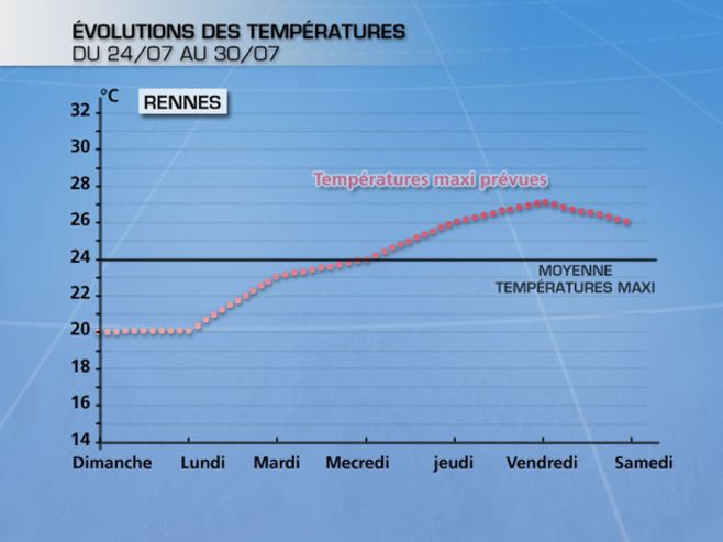 Cette semaine, le temps est particulièrement maussade avec son lot de pluie, de vent et de fraîcheur... le cocktail détesté par tout vacancier ! Peu à peu, la situation évoluera et la semaine prochaine laisse entrevoir une nette amélioration à partir de mercredi. Ce week-end déjà, les averses deviendront plus rares, et les thermomètres approcheront les 20°C.