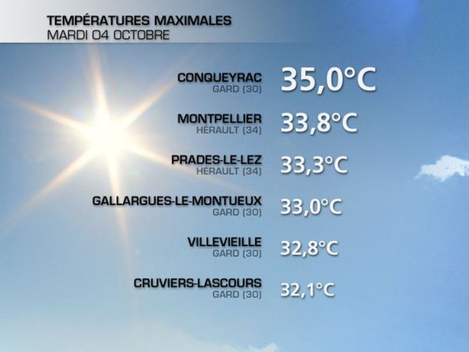 - 35°C à Conqueyrac (30), record du 2 octobre 1997 battu (34.2°C)