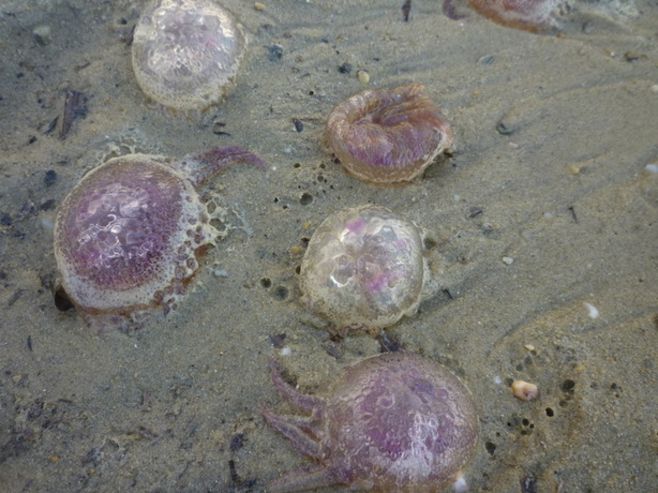 Les autres méduses observées ne sont autre que les célèbres pelagia noctiluca, une petite espèce aux tentacules très urticants qui font le malheur des touristes chaque été. De couleur rose ou violette, elles peuvent atteindre 15 cm de long. Elles se déplacent en bancs selon les courants et apprécient particulièrement les zones tempérées et chaudes.