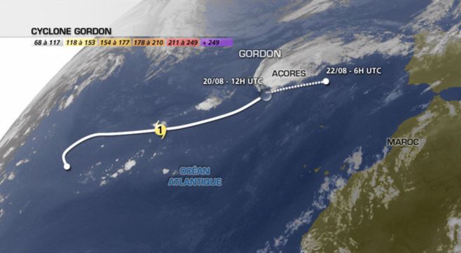 Gordon perd rapidement en intensité en se dirigeant ensuite vers les côtes portugaise et espagnoles car il progresse à la surface d'eaux plus froides qui ne peuvent donc plus lui fournir l'énergie nécessaire pour se renforcer. l'ex cyclone Gordon devrait néanmoins atteindre le littoral espagnol mercredi au stade de dépression très dynamique. Une situation à surveiller, car cette dépression (ex Gordon), pourrait provoquer un fort coup de vent le long des côtes espagnoles.