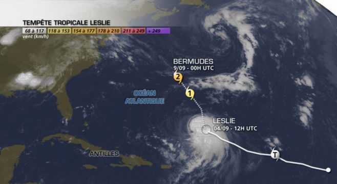 La tempête tropicale Leslie vers les Bermudes