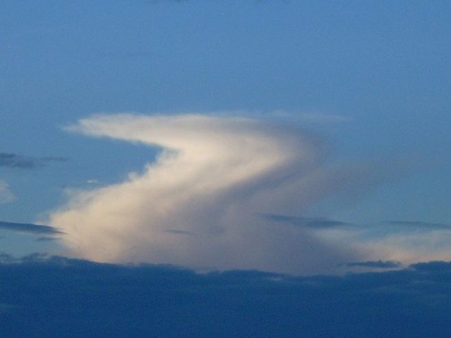 - « L’œil de Sauron de Thierry Gaudel » à Plainfaing dans les Vosges : notre internaute a baptisé ainsi cette formation nuageuse en référence à l’œil maléfique du célèbre film Le Seigneur des Anneaux. Il s’agit en fait d’altocumulus qui se présentent sous la forme de galets rassemblés, avec quelques trouées de ciel clair entre les nuages. Ces altocumulus se forment lorsqu’il y a beaucoup d’humidité dans l’air et sont souvent signes de précipitations…