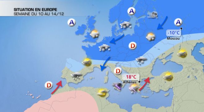 Des vents qui s'orientent à l'est La semaine prochaine s'annonce véritablement hivernale sur l'ensemble de l'Europe : la France