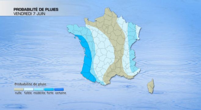 Bien peu de nuages sur le pays en matinée. Les brumes et nuages bas se font plus discrets que ces derniers jours près de la Manche. Quelques entrées maritimes peuvent concerner les rivages de la Méditerranée. Dans l'après-midi, des nuages se développeront du nord-ouest jusqu'au centre-est. Ils pourront localement donner une ondée orageuse en fin d'après-midi. Quelques orages se déclencheront aussi sur les reliefs des Pyrénées, du Massif-Central, du Jura et des Alpes. Au nord de la Seine ainsi que du sud-ouest à la Méditerranée, le soleil restera bien présent. En soirée, quelques orages isolés pourront concerner l'Aquitaine.