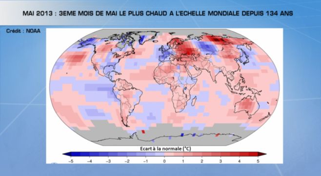 Aussi surpenant que ce soit pour nous français, ce mois de mai 2013 aura été le 3ème mois de mai le plus chaud depuis 1880, selon la NOAA (National Oceanic and Atmospheric Administration).