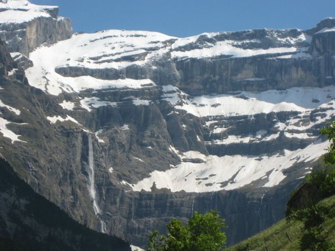 Précisons donc qu'il existe des névés (plaques de neige glacées persistantes) et des glaciers sur les plus hauts massifs pyrénéens : ceux de la Maladetta (dont le Pic d'Aneto est le point culminant de toute la chaîne, de l'autre coté de la frontière espagnole) ; ceux du massif de Néouvielle, du Vignemale et de Gavarnie (Hautes-Pyrénées) pour l'essentiel ; on les trouve parfois dès 2600 m d'altitude, jusqu'aux cimes (3000 à 3400 m). Comme pour les Alpes, ces glaciers sont affectés par un fort recul depuis le 19 ème siècle en raison du réchauffement climatique réçent, mais ces dernières années, l'occurence d'hivers très enneigés stabilise quelque peu leur recul...