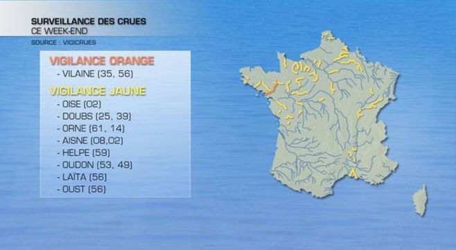 Plusieurs fleuves et rivières ont donc été placés en niveau jaune par le service de surveillance des crues. C'est notamment le cas dans le Nord-Pas-de-Calais, en Normandie et en Picardie où de nombreux cours d'eau sont placés en niveau jaune.