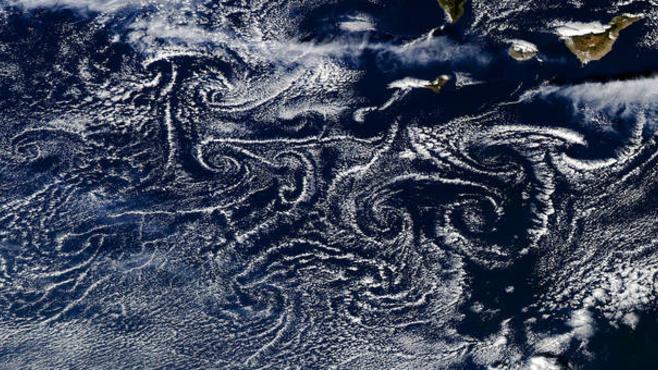 Il s'agit d'un phénomène spectaculaire, régulier au-dessus des îles Canaries et des Antilles, baptisé "tourbillons de Von Karman" ou "vortex de Von Karman". Découvrez l'explication de notre météorologue en vidéo.