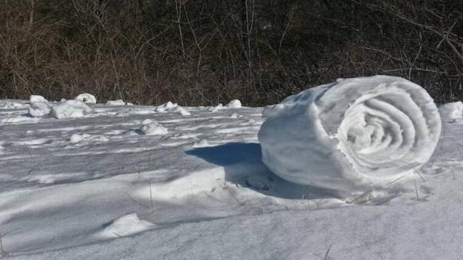 Il suffit d’un vent de 45 km/h au moins (mais pas au-dessus de 70 km/h), associé à de la neige déjà au sol, pour pousser ces rouleaux de manière cylindrique, exactement comme des mains roulent la neige au sol pour construire un bonhomme de neige. Autre condition essentielle, la glace : une bonne épaisseur doit être présente sous la surface enneigée afin que la neige ne tienne pas au sol et puisse glisser facilement avec l’action du vent. La température doit avoisiner les 2°C afin que la neige tienne, tout en fondant légèrement ce qui la rend malléable. La taille de ces rouleaux peut atteindre jusqu’à 60 cm de l’avis de ceux qui les ont observés.