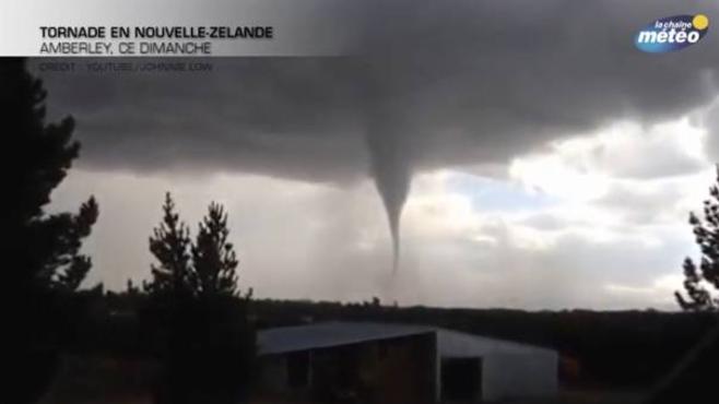 Ce dimanche, au coeur d'une violente dégradation orageuse, deux tornades de faible intensité ont touché l'île du sud du "dernier nouveau monde". Celle d'Amberley, la plus filmée par les habitants, a parcouru environ 70 kilomètres, en 3 minutes. 20 habitations ont été fortement endommagées, mais aucune victime n'est à déplorer. Malgré des orages violents l'été (de décembre à février dans l'hémisphère sud), le phénomène est assez rare dans ce pays : 7 à 10 tornades par an, contre une vingtaine en France par an. La plus meurtrière a eu lieue en décembre 2012 à Hobsonville du côté d'Auckland, avec 3 victimes.