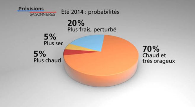 L’analyse des différents modèles numériques de prévisions saisonnières ne permet pas de dégager des anomalies particulières pour la France métropolitaine, ce qui conforte nos analyses initiales selon lesquelles l’été 2014 serait standard. Le scénario pour le trimestre juin – juillet – août semble assez homogène, ce qui rend difficile la prévision par décade.
