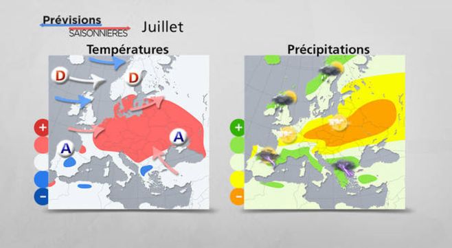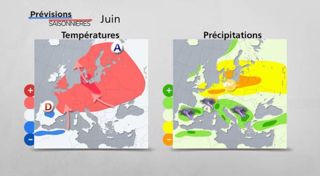 JUIN : un mois estival, chaud et souvent orageux surtout en montagne. La première décade pourrait être passagèrement perturbée notamment dans le sud avec des orages. Le beau temps chaud pourrait dominer en deuxième décade tandis que les orages redeviendraient plus fréquents en troisième décade.