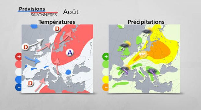 - août : plus mitigé au nord de la Loire, beau et chaud au sud (orages en montagne).