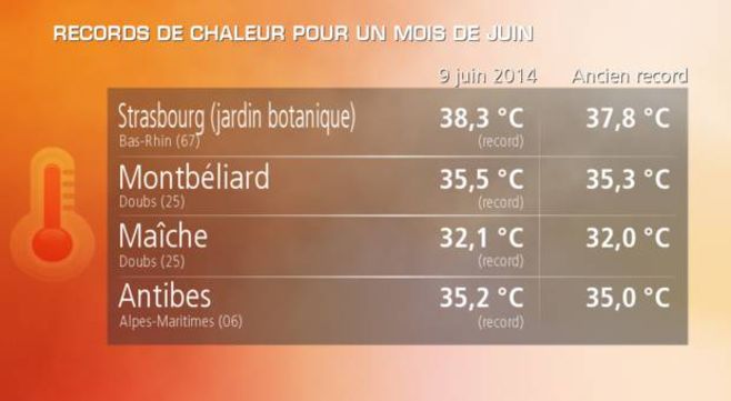 Dans d'autres villes comme Mulhouse (Haut-Rhin), Montbéliard et Maîche (Doubs), ont aussi battu le record de température maximale en Juin.
