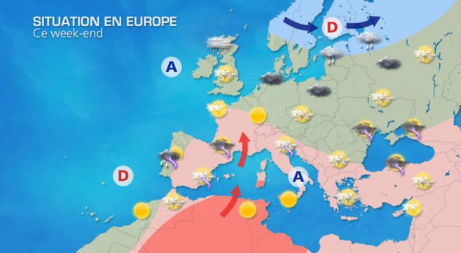 La remontée d'air chaud venant d'Espagne et la proximité d'une dépression orageuse au large du Portugal vont déstabiliser la masse d'air sur le sud-ouest du pays. Si samedi les orages se limitent au piémont pyrénéen, à partir de 16h et jusque dans la nuit, ils s'étendent demain dimanche et surtout dans la nuit de dimanche à lundi à toutes les régions du sud-ouest ainsi qu’au relief alpin.