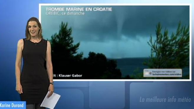 Une partie de l'Europe se trouve au coeur d'un conflit de masses d'air : entre l'air frais poussé par une dépression sur l'Allemagne (provoquant pluies diluviennes et inondations là-bas), et de l'air extrêmement chaud sur l'Europe de l'est (canicule en cours sur la Pologne et la Russie). Ce contraste thermique produit de violents orages sur l'Italie, la Croatie, la Slovaquie... C'est justement sous un orage en mer que s'est formée une impressionnante trombe marine en Croatie, dimanche dernier à Orebic.