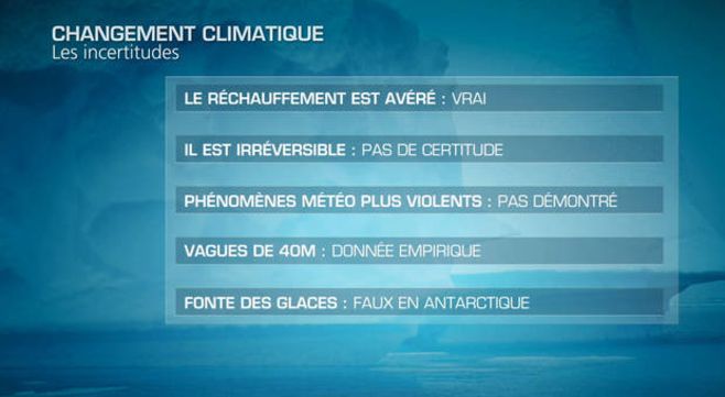 Finalement, les certitudes sont peu nombreuses : on sait que le réchauffement sera plus marqué sur les continents que sur les océans et que le cycle de l’eau sera plus intense. Pour l’ouest de l’Europe, les étés seraient plus chauds et les hivers plus humides notamment sur la façade atlantique. Cela dit, certains organismes météorologiques tel que le très sérieux Met Office britannique envisagent la poursuite de la phase actuelle de stagnation des températures (le réchauffement climatique planétaire s’est stabilisé depuis 1998), évoquant même une «possible baisse après 2020» en fonction du cycle solaire en cours et de la capacité d’absorption de la chaleur par les océans.