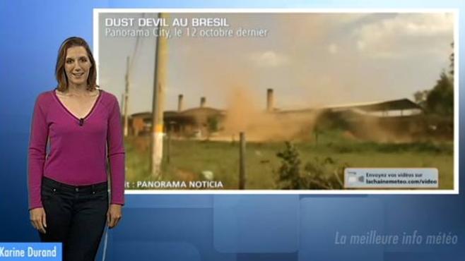 Manifestation impressionnante mais très courte, les "dust devils" sont courants par temps chaud et sec, comme cela a été le cas dans cette région du Brésil. Ces «Diables de poussières», comme les ont nommés les indiens d’Amérique qui croyaient à une manifestation du Mal, se forment très couramment dans les régions désertiques : de l’air instable entre en rotation et soulève la poussière ou le sable du sol. Leur formation dépendant fortement du réchauffement du sol, ils se produisent régulièrement au printemps en raison d’un air très sec et de journées plus longues. Leurs diamètres varient le plus souvent de quelques centimètres à quelques mètres. En France, il n'est pas rare d'en apercevoir très furtivement sur des sols sableux ou sur des champs fraîchement labourés.