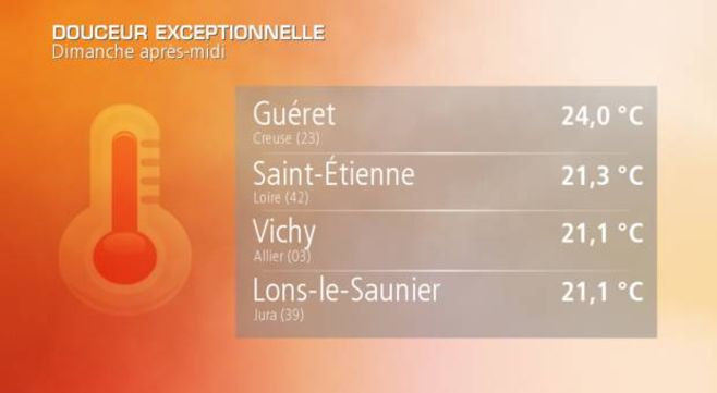 *21,3°C à Saint-Etienne (42) et à Vichy (03)