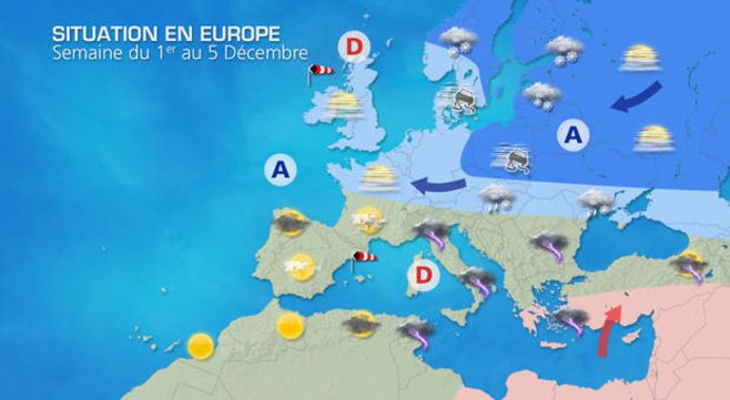 Pour le début du dernier mois de l'année 2014, les températures minimales et maximales reviendront dans des valeurs de saison. Localement, les températures seront même en dessous des moyennes.