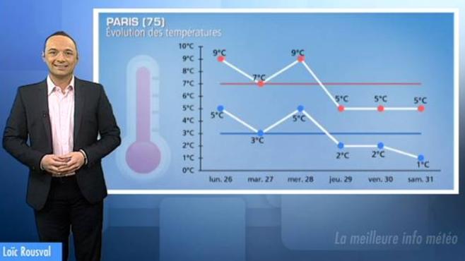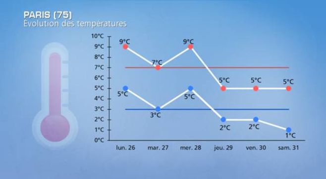 -A Paris (75), ce lundi, les températures minimales et maximales étaient au-dessus des moyennes de saison, à partir de jeudi, les températures vont baisser et seront de nouveau proches du 0°C le matin.