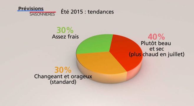 Pour l'été, la fiabilité est faible pour l'instant : les différents modèles que nous utilisons pour l'élaboration de ces prévisions saisonnières ne permettent pas de dégager un scénario vraiment majoritaire, même si l'analyse globale semble privilégier un été plutôt beau et assez sec.