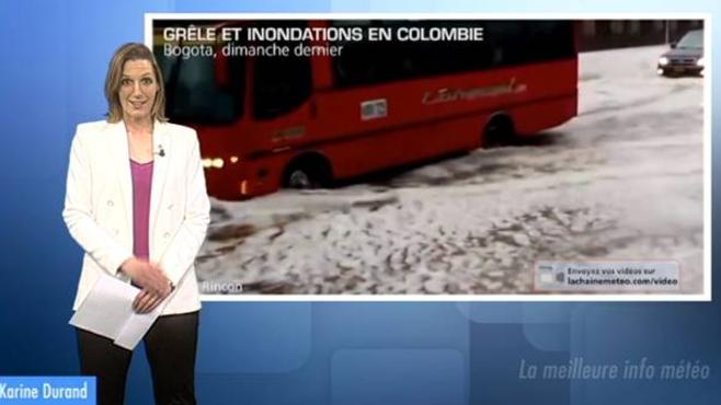 La capitale de la Colombie, Bogota, a été balayée par des orages particulièrement puissants ayant engendré une accumulation de 60 cm de grêle et 20 cm d'eau dans les rues de la ville. 50 personnes ont été blessés, dont 7 d'entre elles par un toit de parking effondré sous le poids de la grêle.