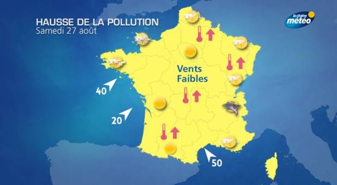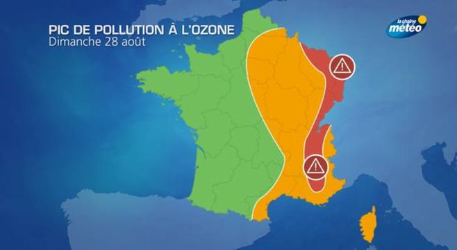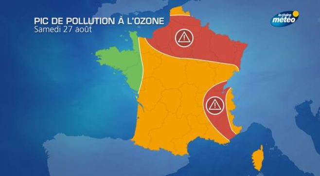 Samedi, les vents de sud, sud-est sur le centre du pays concentreront les valeurs d'ozone les plus fortes au nord de l'Île de France, tandis que la pollution s'intensifiera sur place dans la vallée du Rhône et en Alsace.