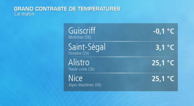 Ce matin : il a gelé en Bretagne, 25°C à Nice