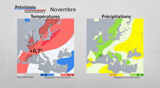 Il n’y a pas encore de chronologie mensuelle nette qui se dégage : les mois de décembre et de janvier pourraient rester perturbés, humides et doux dans un flux dépressionnaire de secteur ouest à sud-ouest. Les températures resteraient supérieures aux moyennes sur toute l’Europe avec des précipitations excédentaires sur la France, sauf sur la bordure méditerranéenne, protégée. Bien sûr, des rafraîchissements passagers de saison sont inévitables, mais ne sont pas détectés par les modèles à l'heure actuelle.