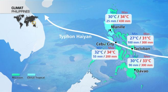 Les Philippines sont fréquemment frappées par des phénomènes cycloniques de grande ampleur. On se souvient du Super-typhon de catégorie 5, Hagupit, qui a traversé l’archipel le 7 décembre 2014 en catégorie 3 dans la province de Samar. C'est surtout le Super-typhon Haïnan (novembre 2013) qui a ravagé l’archipel de part en part, semant la désolation.