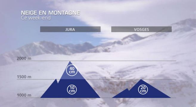 L'enneigement est important sur les Vosges et le Jura (25 à 30 cm dès 900 m d'altitude), mais beaucoup plus inégal sur les Monts d'Auvergne (entre 10 et 15 cm). Le vent a soufflé la neige, formant des congères. Pour le Massif-Central, l'enneigement est plus conséquent dans les Monts du Forez et sur le Pilat, alors qu'il est plus inégal et soufflé par le vent sur les autres massifs. Ce week-end, les stations des Estables (43) et de Chalmazel (42) ont ouvert quelques pistes. Dans les Vosges, le Markstein a également ouvert quelques pistes ainsi que la station des Rousses et le domaine de la Faucille dans le Jura.