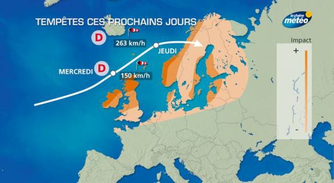 La tempête a touché le Royaume Uni mercredi avec des vents compris entre 100 et 190 km/h. Elle progresse vers la Scandinavie ce jeudi.