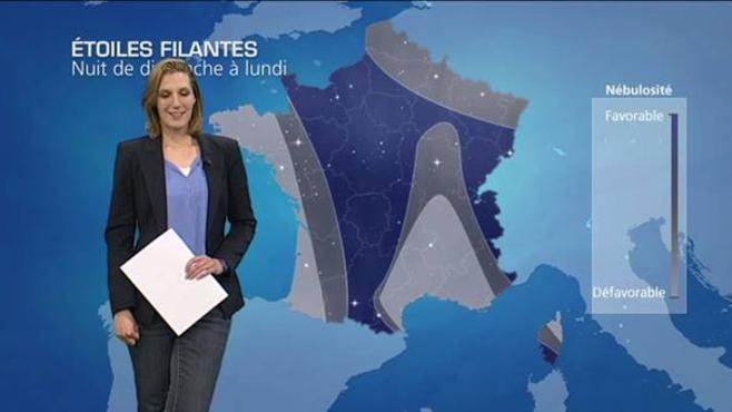 La Lune ne gâchera pas la fête ce week-end puisqu'elle sera en phase de nouvelle Lune. Sa luminosité sera faible et n’empêchera pas l’observation des étoiles. En dehors du golfe du Lion où les entrées maritimes viendront ennuager le ciel, le reste du pays bénéficiera de bonnes conditions d’observation : un ciel plutôt dégagé et une Lune quasiment absente permettront à la majorité des français d’apercevoir ces bolides du ciel, dans la douceur à l’ouest et la fraîcheur à l’est.
