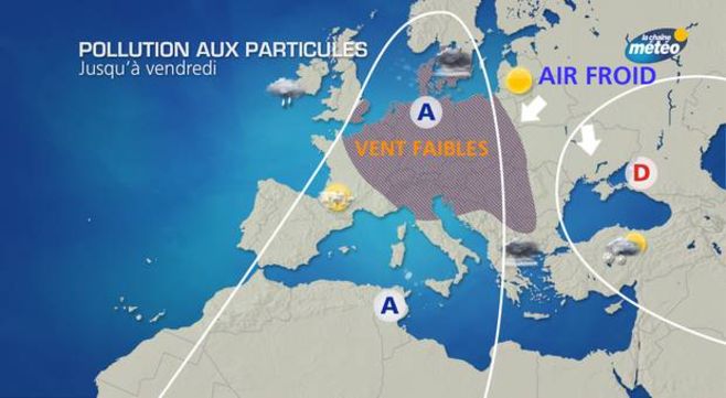 Il n’y a pas d’amélioration à attendre avant vendredi car les hautes pressions vont persister sur l’est du pays et la pollution va persister au nord de la Seine. Elle aura même tendance à se généraliser à l’est du pays d’ici vendredi.