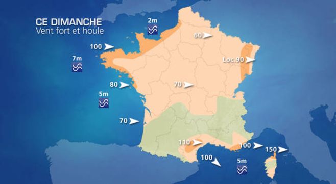 A l'exception du sud-est, aucune région n'échappe aux pluies. Le vent souffle fort partout, jusqu'à 100 km/h en Provence côte d'Azur et 150 km/h en Corse.