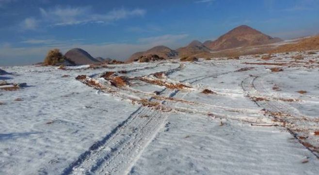 Du nord de Arabie-Saoudite à la frontière irakienne les chutes de neige ont parfois laissé plusieurs centimètres au sol comme à Rafha. On pouvait se promener sur 3 cm de neige à dos de chameau ou contempler un paysage désertique de rochers et dunes sublimé par le manteau blanc.
