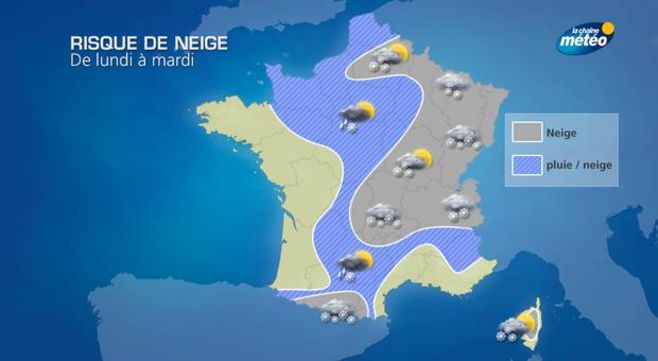 Ainsi, plusieurs départements ont été placés en alerte neige-verglas, du Nord-Pas-de-Calais à la Seine Maritime et de la Lorraine à la Bourgogne.