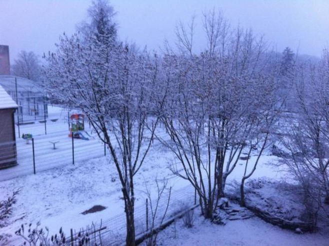 On retrouve également une zone neigeuse de la Meuse à la Côte d'Or, se décalant vers la Haute-Saône et l'est de la Lorraine avec des précipitations sous forme de neige tenant au sol sans difficulté puisque les températures ne dépassant pas 0°C (photo ci-dessus du département de la Moselle). Prudence au cours des prochaines heures.