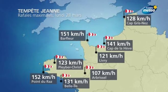 Cette tempête, accompagnée de fortes pluies et averses, a provoqué des dégâts de la Bretagne au Nord Pas-de-Calais avec des rafales atteignant 150 km/h sur les caps bretons et normands. Dans l'intérieur des terres, des pointes à 120 km/h ont été relevées dans le Finistère et le Calvados. L'alerte a été levée à la mi-journée, l'heure est maintenant au bilan.