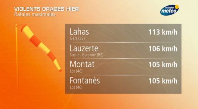 Une perturbation a balayé l'Aquitaine, Midi-Pyrénées et le Massif-Central. Elle a apporté de violents orages accompagnée de brutales rafales de vent et de chutes de grêle.